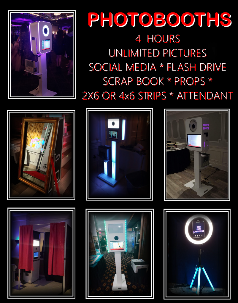 Weddings, Sweet 16, Bar/Bat Mitzvah, Corporate and any other events throughout the Tri State area and beyond. We offer many types of Photo Booths, Open Air, Led, Mirror, hashtag and Ring Roma . All our booths are able to do GIF, Green Screen, Social Media Platforms (Facebook, Instagram), Video, Text to phone and email.